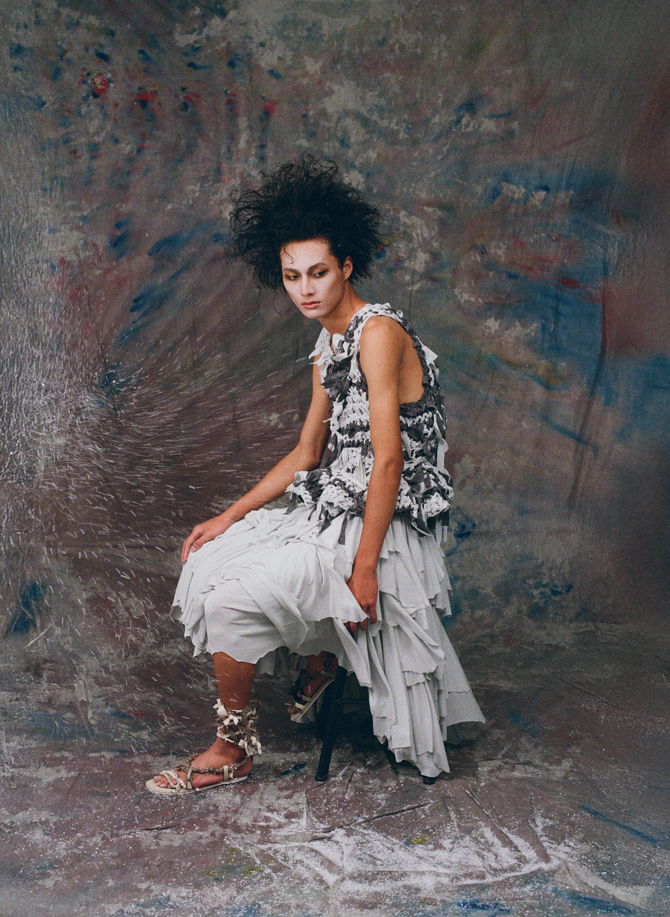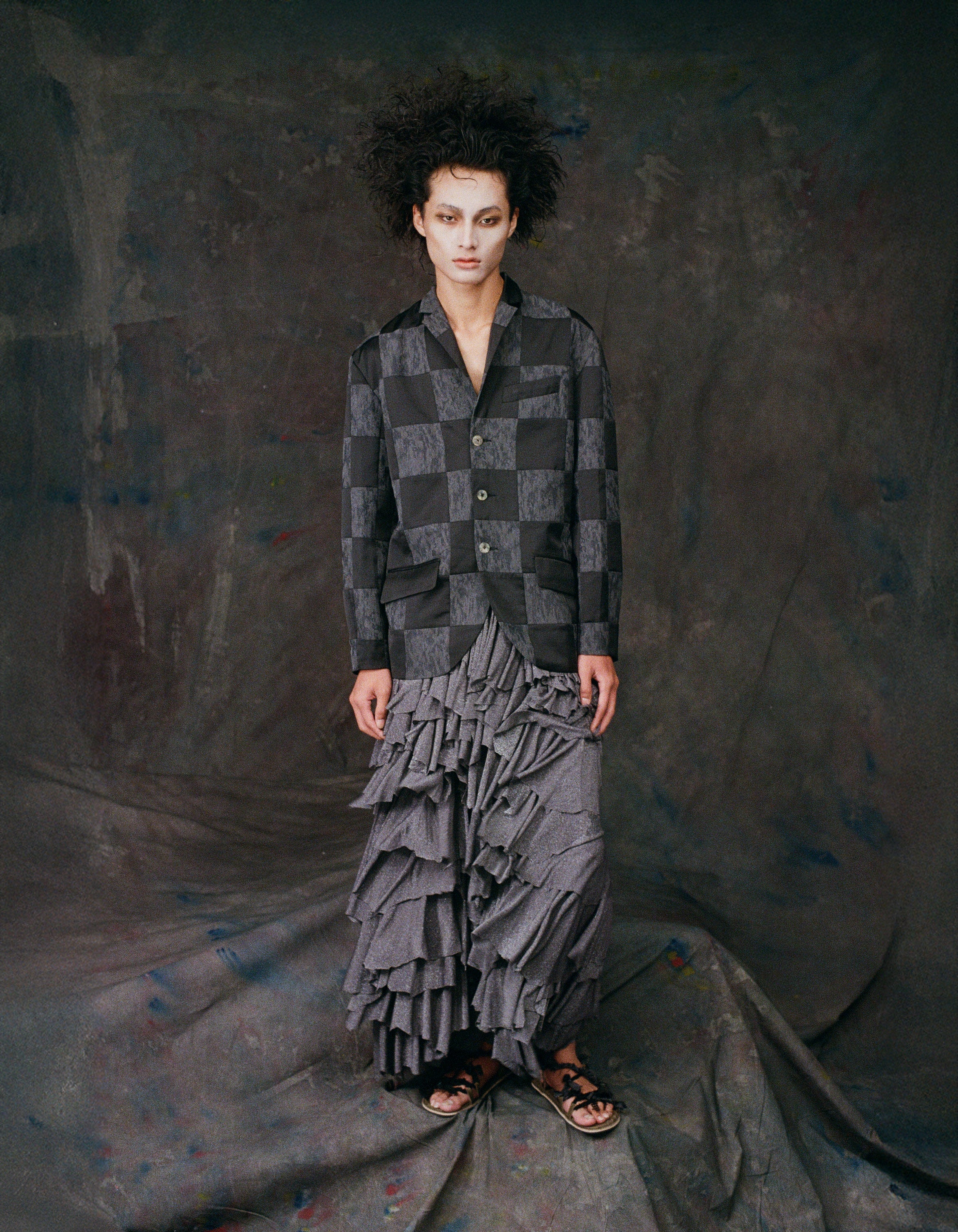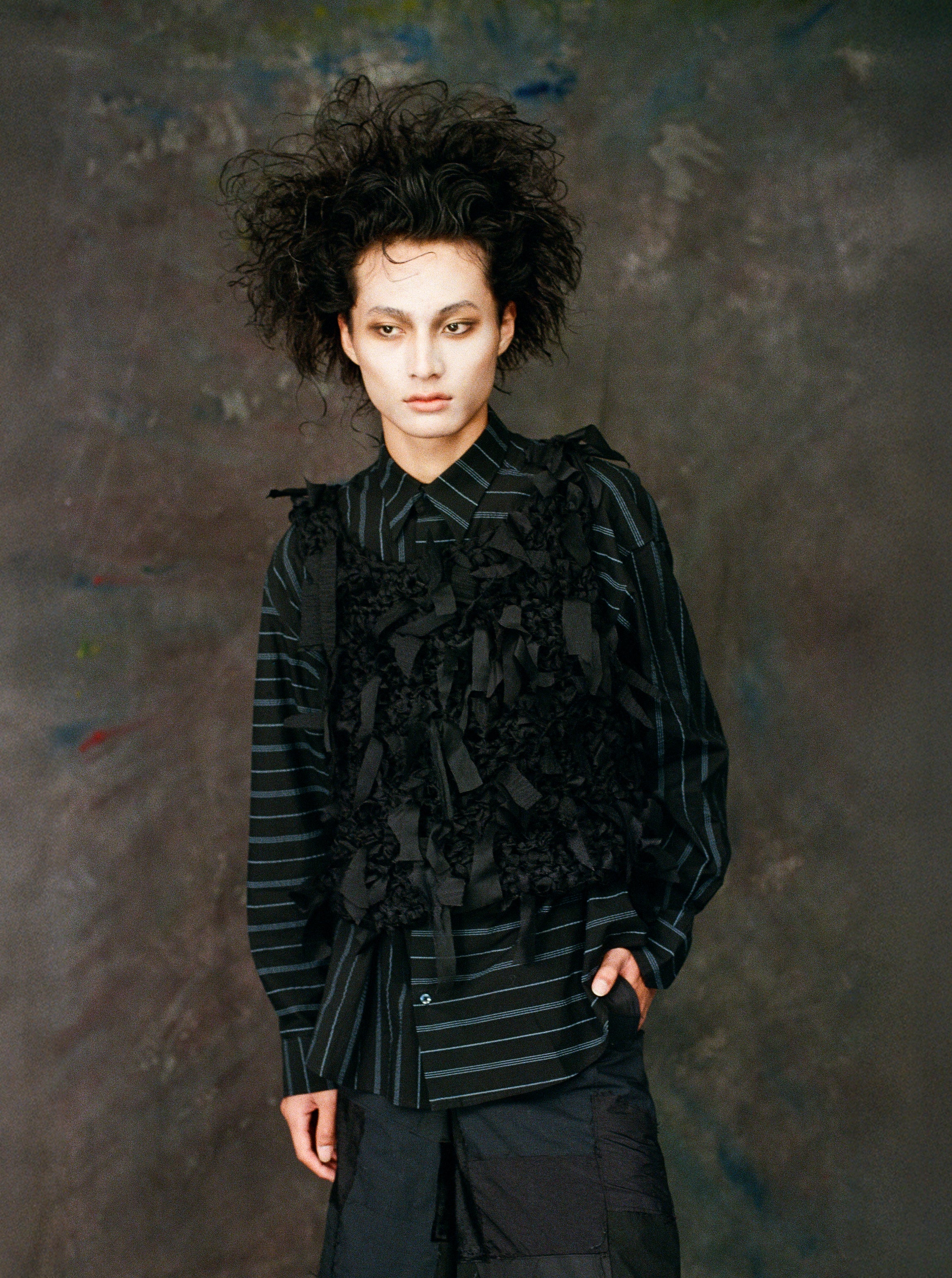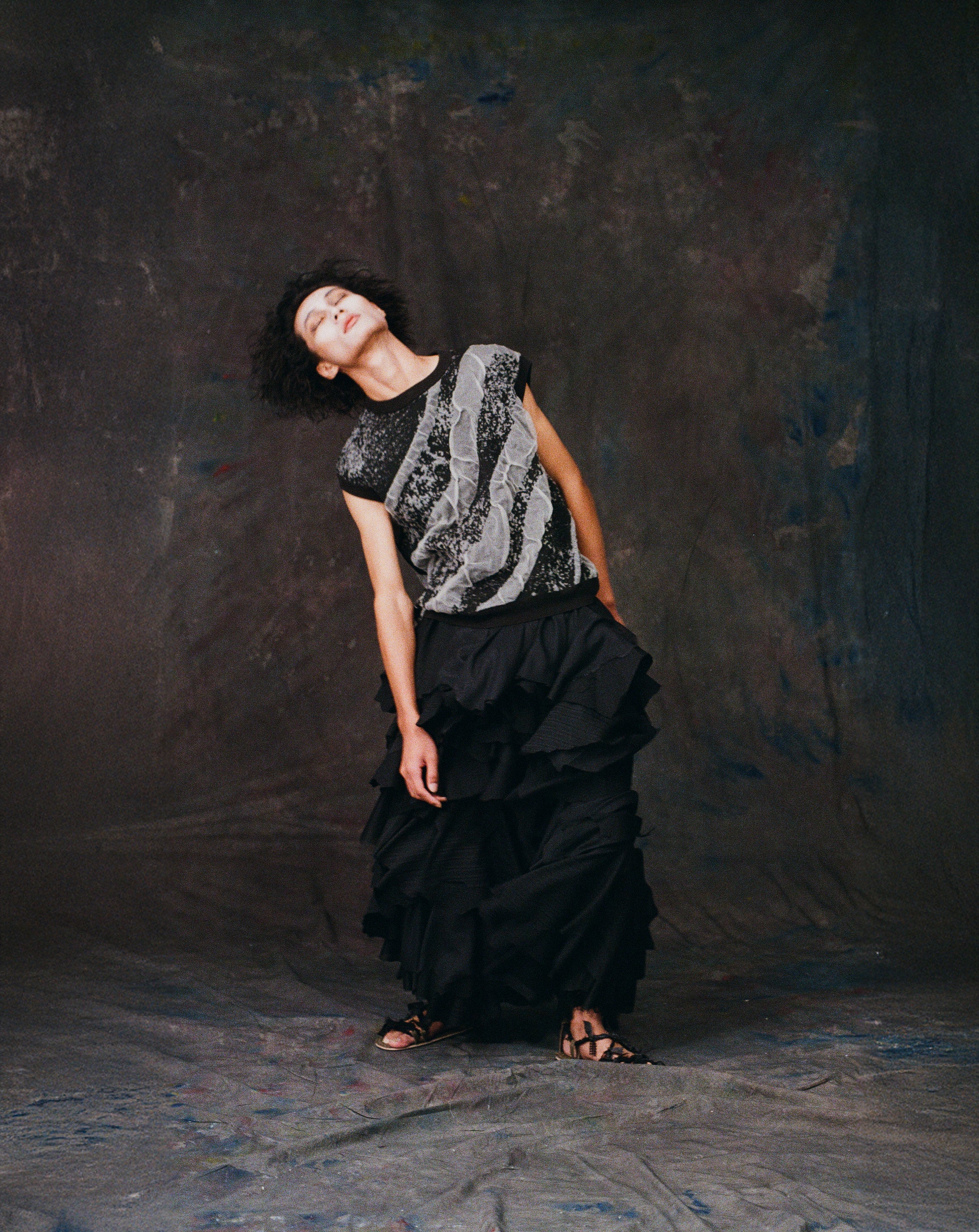 Tidal Reverie draws inspiration from coastlines, shifting tides, and luminous, wet surfaces. Through pleats, layered constructions, and semi-transparent forms, the garments portray the body drifting between light and shadow.