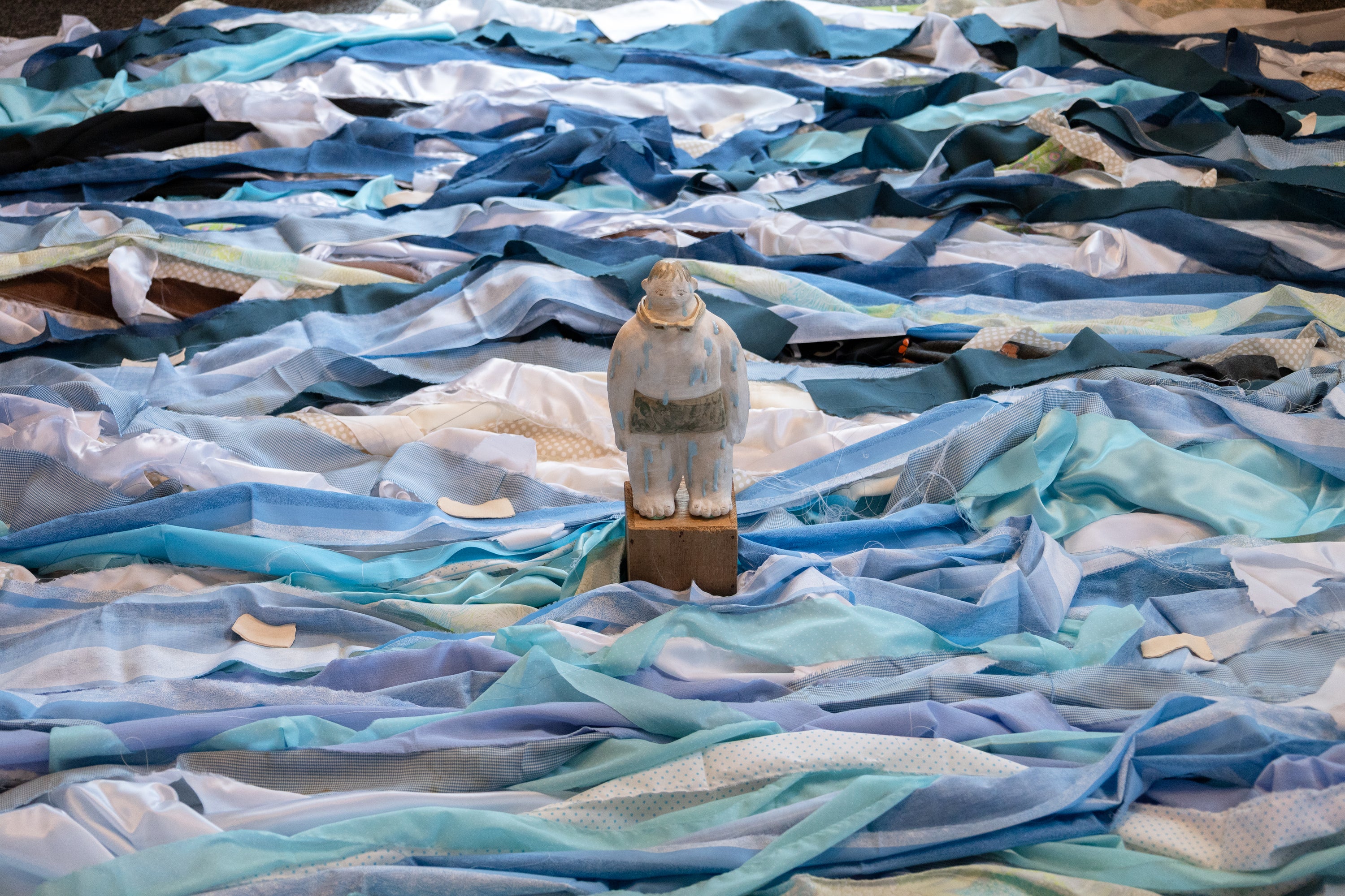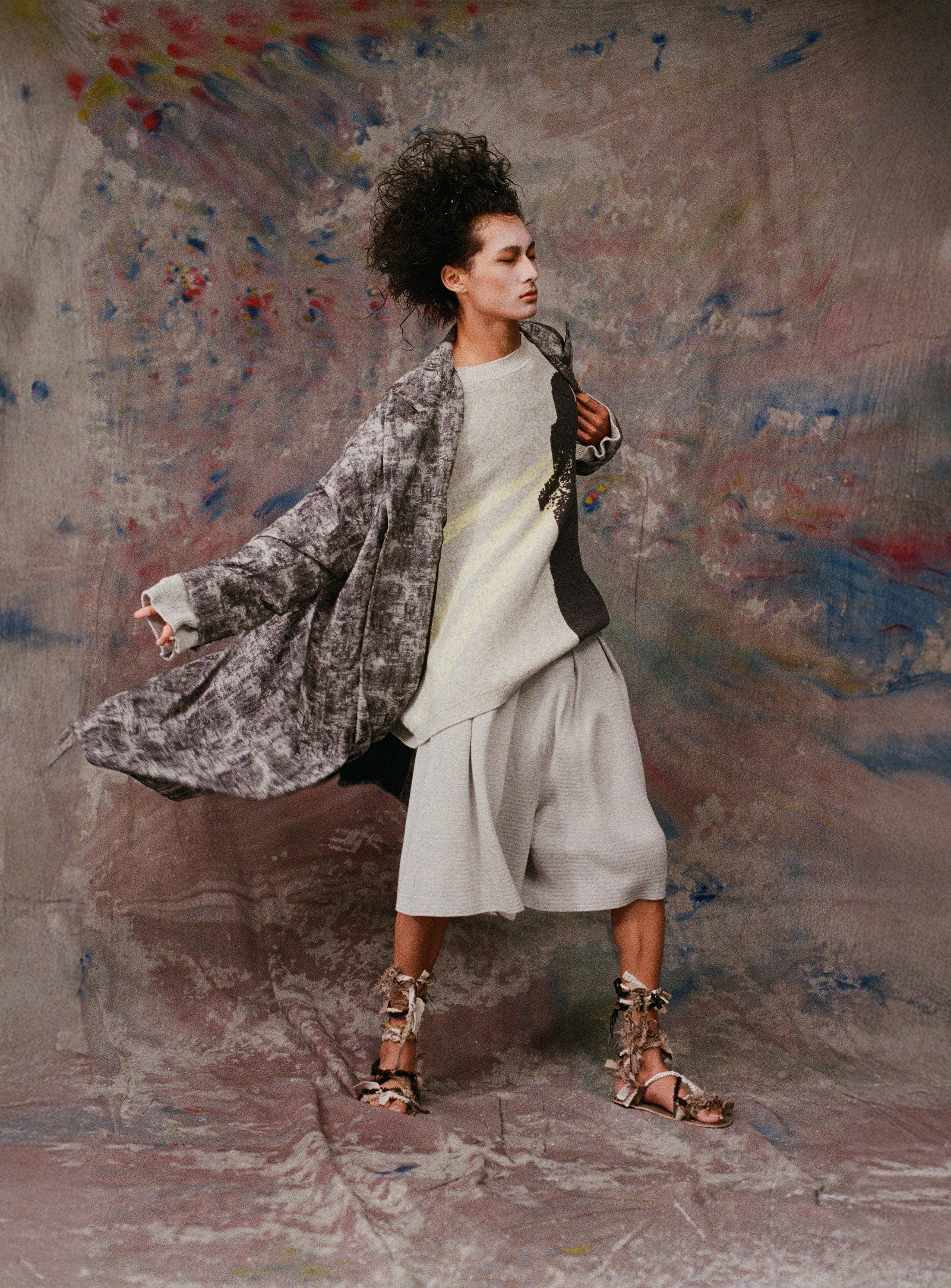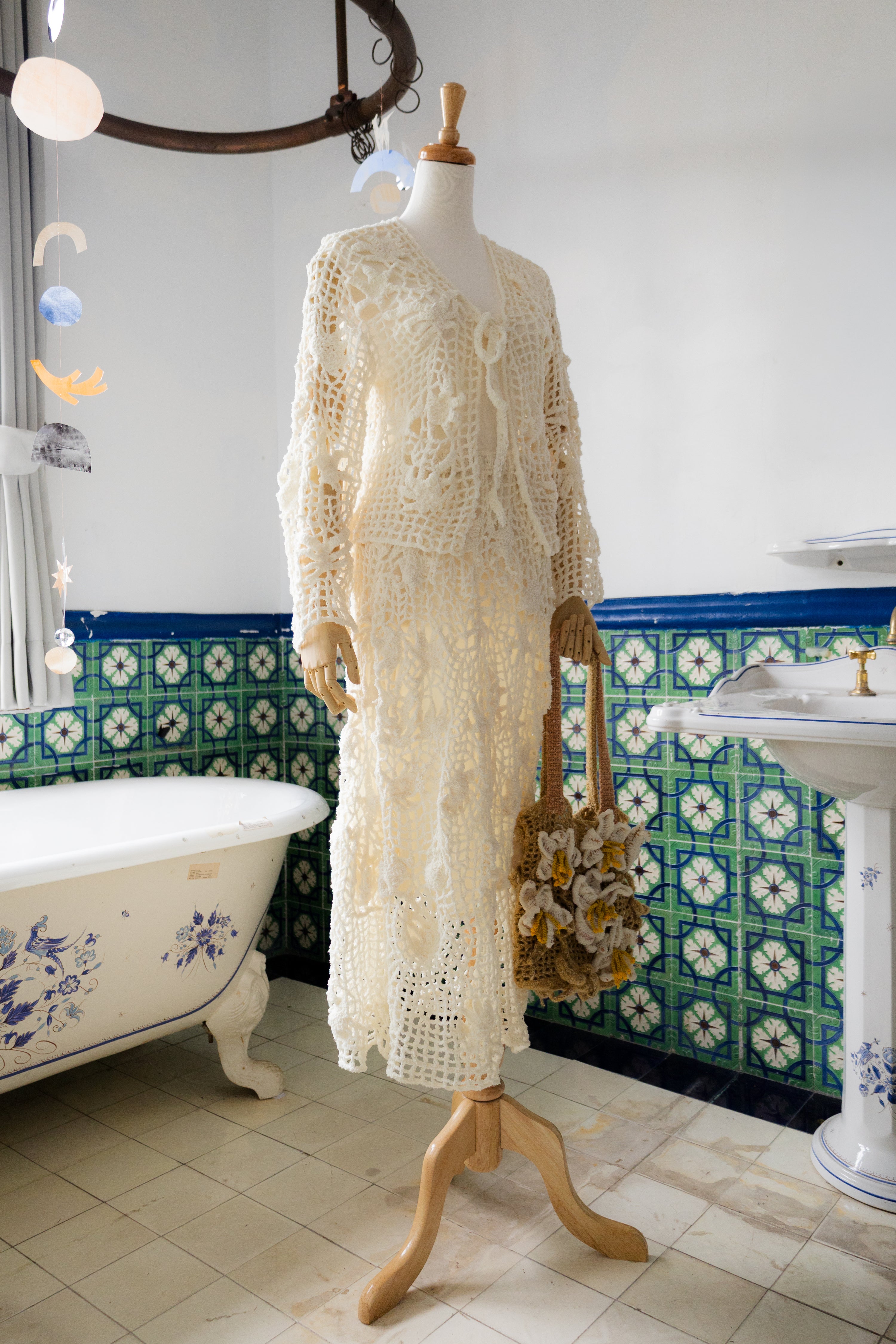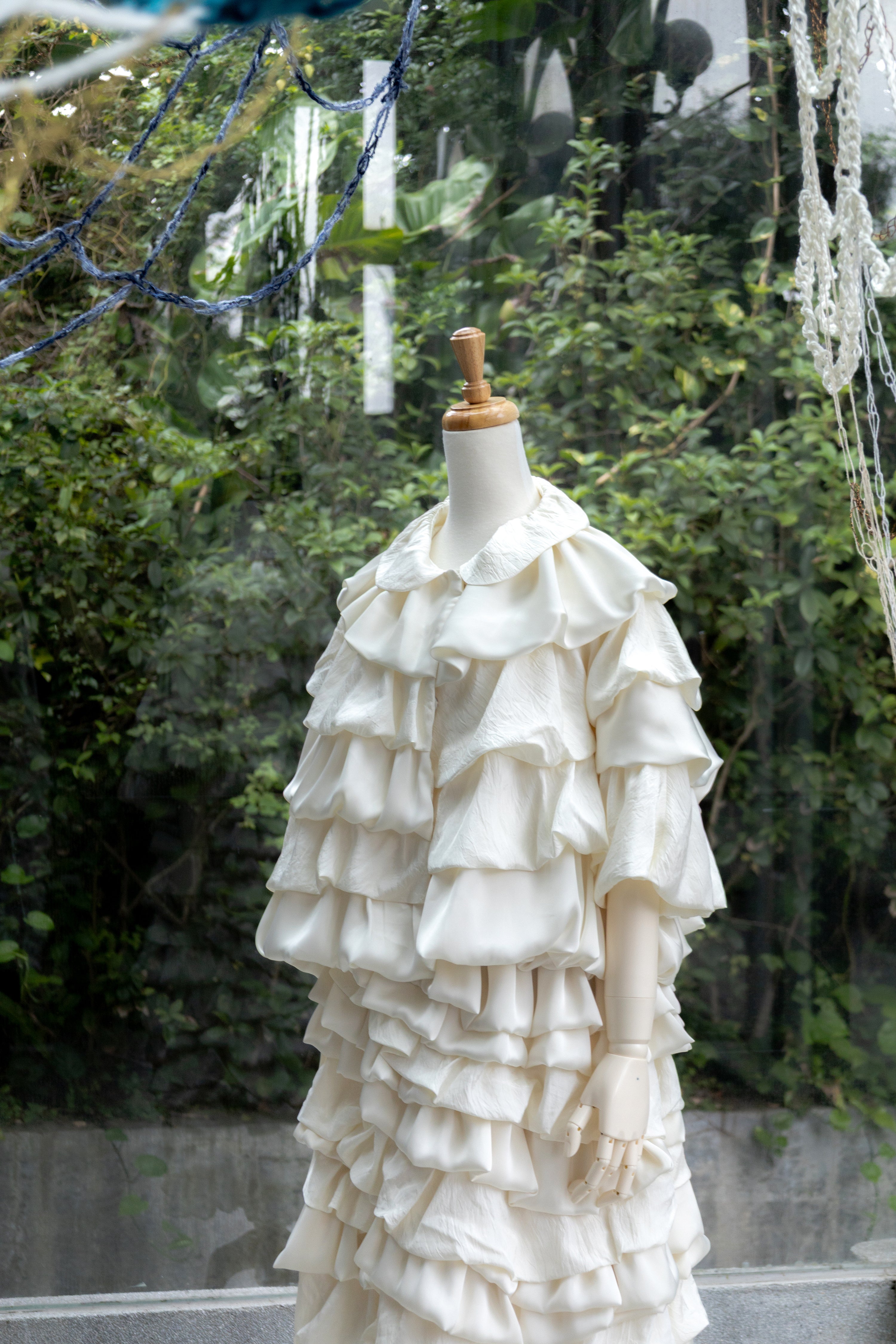 The exhibition continues a cross-disciplinary collaboration with illustrator Xia Xian, weaving together shared motifs of ocean and sunlight. Through garments, hand-woven elements, textile manipulation, and illustration, the two artists create a fluid narrative space that expresses a gentle, living connection between humans and nature.