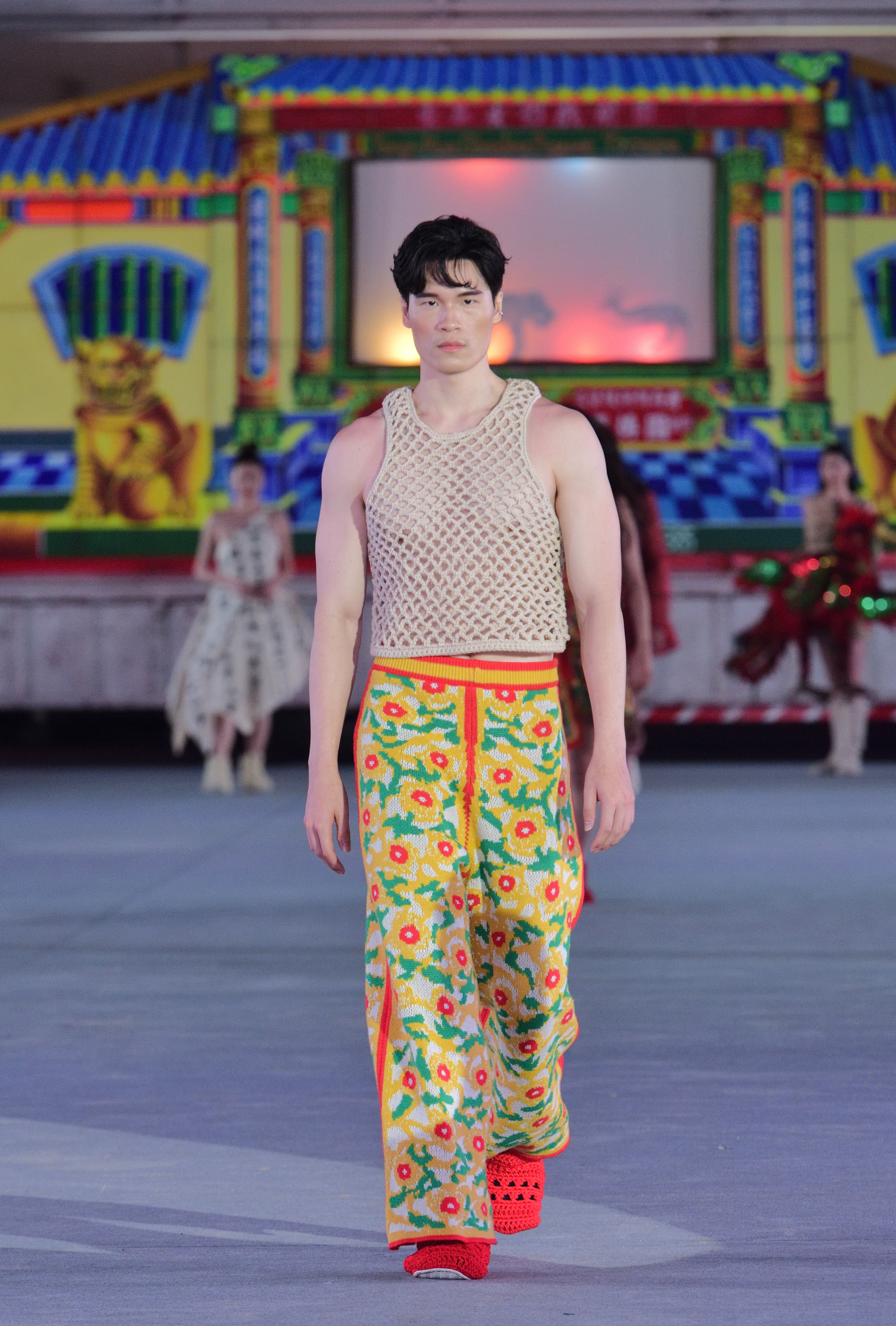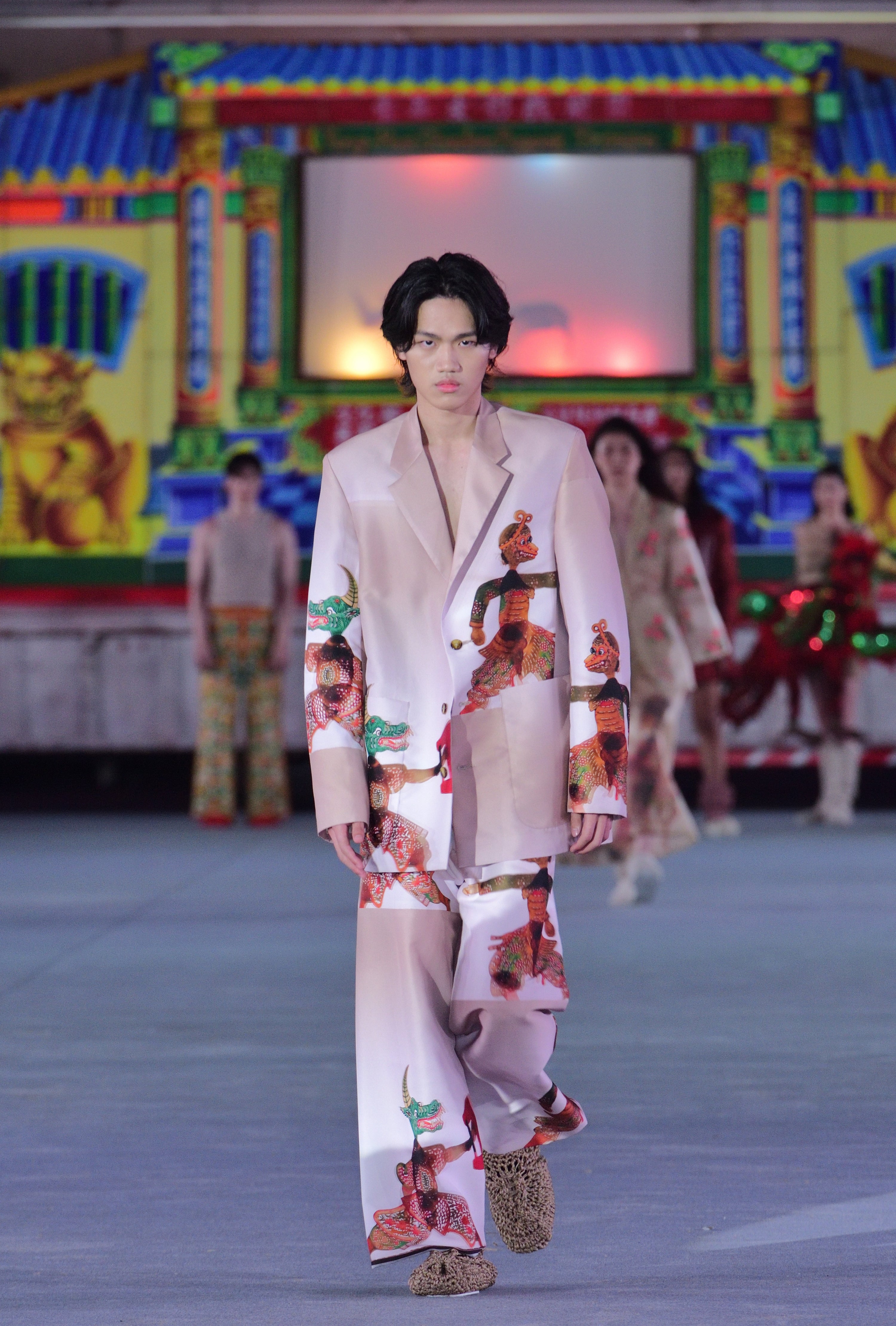 The collection is a collaboration with TUNG-HUA Shadow Puppet Theater (1820). The show took place during the opening of Taipei Fashion Week Autumn-Winter 2023, at Nankunshen Daitian Temple (1662), a historical site in the city of Tainan in Taiwan.