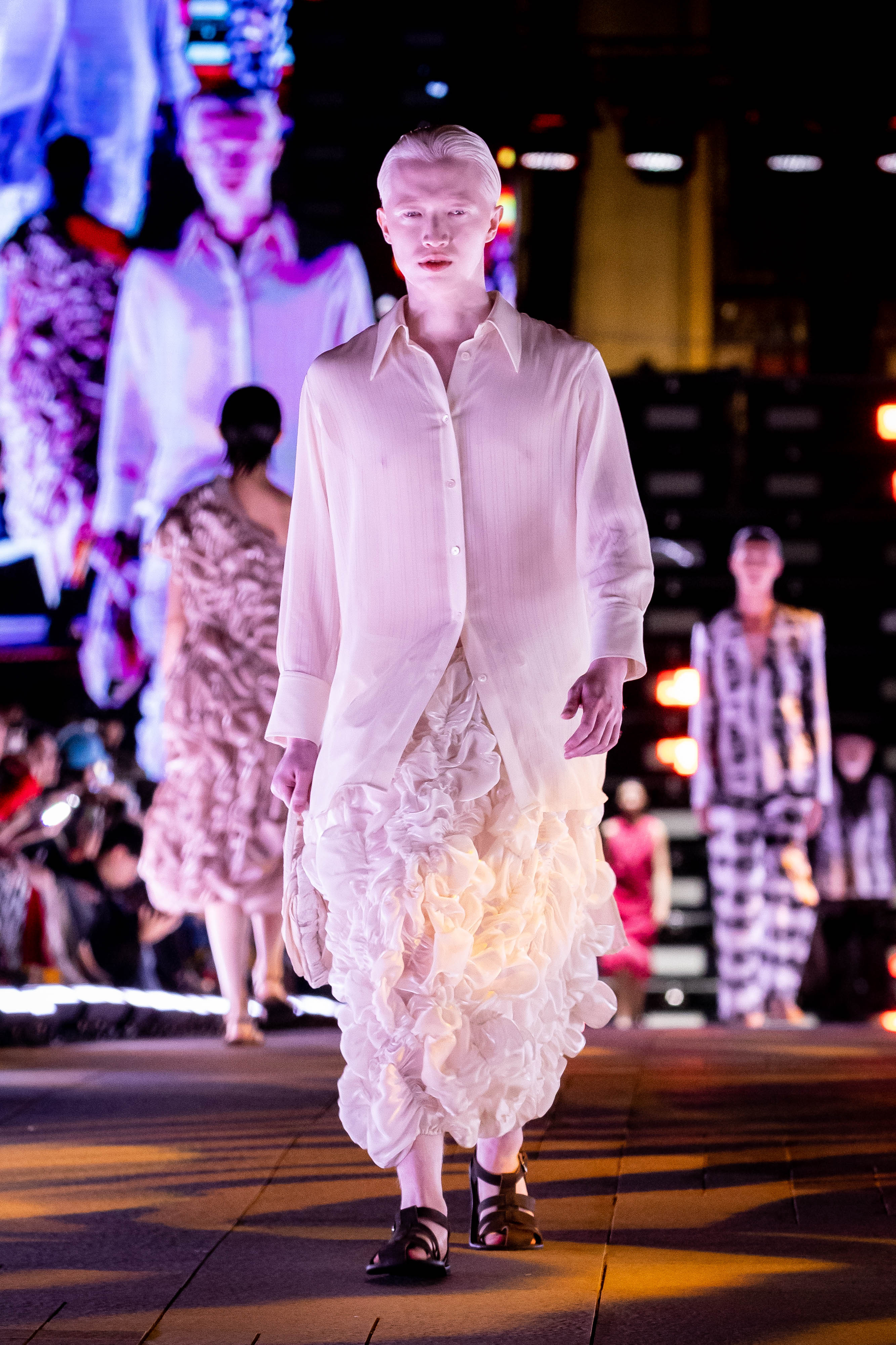 靈感來自人體結構、組成及皮膚特性的不完美,從細胞、組織、器官、系統、生物體,到光滑、自然生理變化的皺紋又或者是肌膚上的細紋和斑點。男裝女穿、女裝男穿又或者是中性著裝、不只是外表及生理上的,也是心理上的認知與認同、生理影響心理、心理影響生理、性別之間相互理 解、性別流動、非常規尺寸的模特兒。