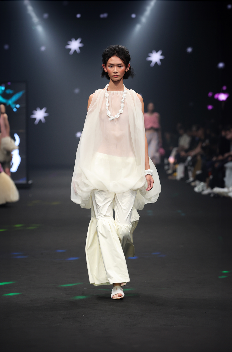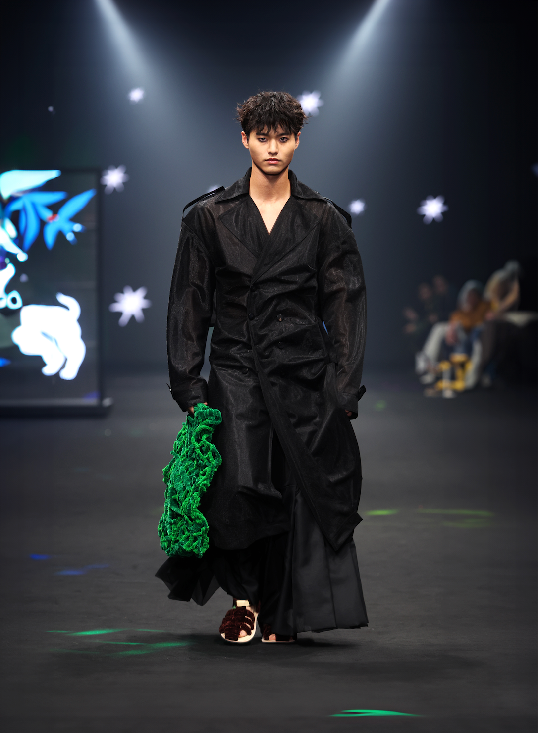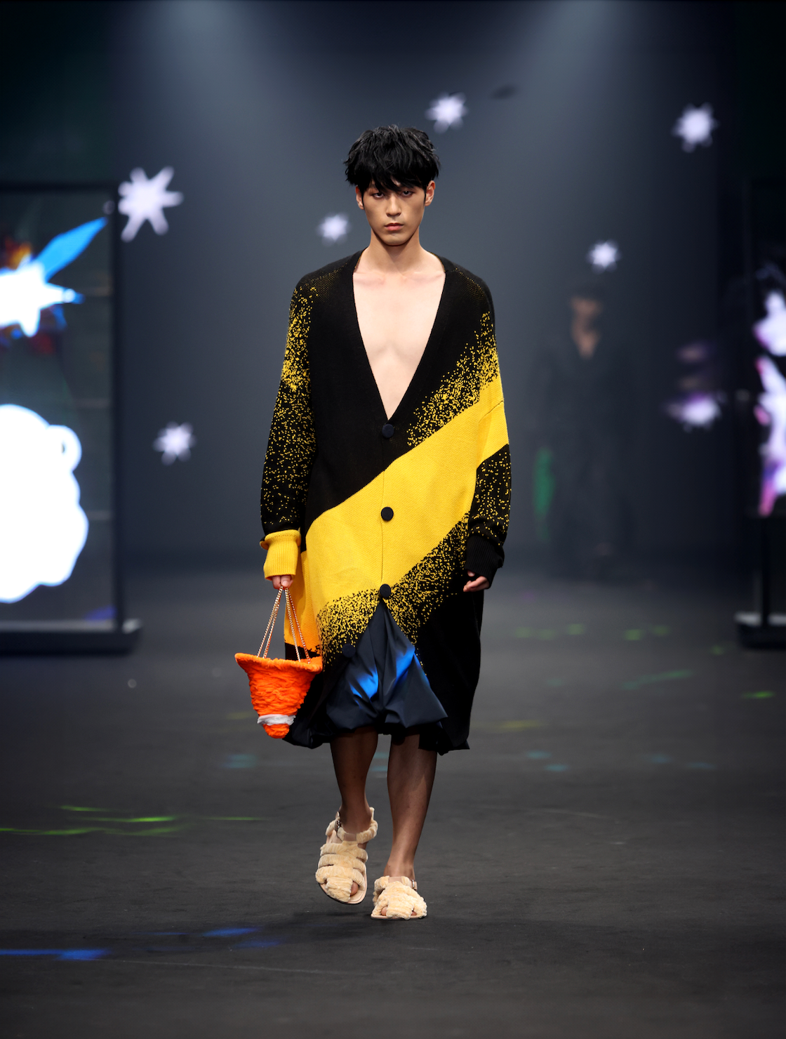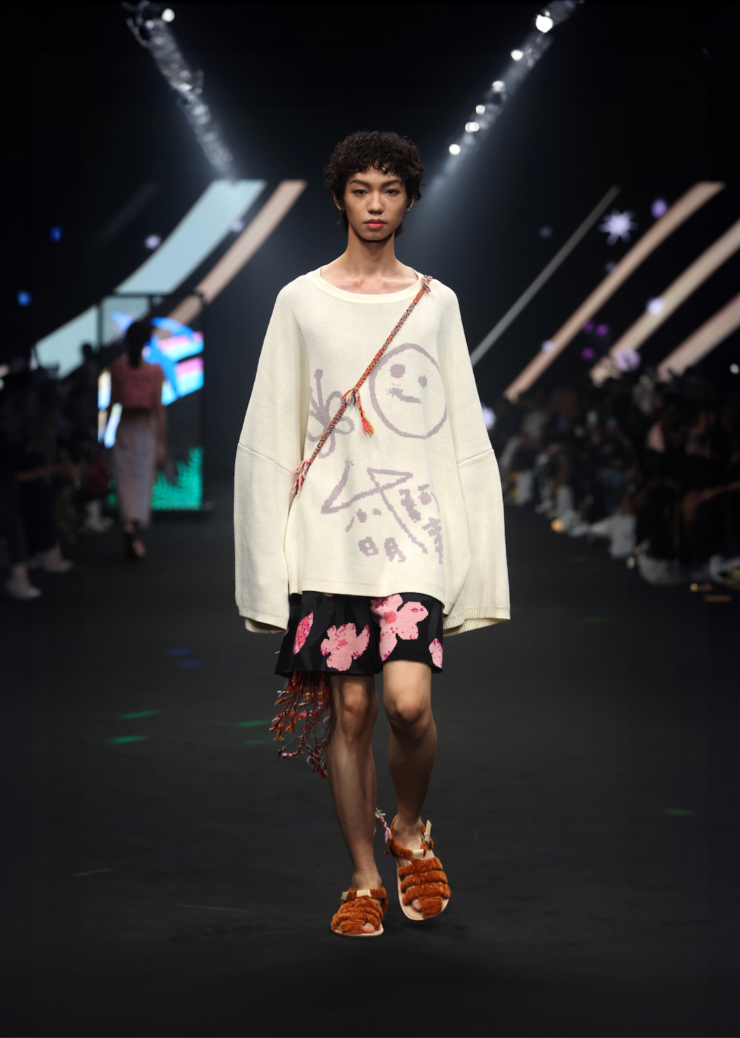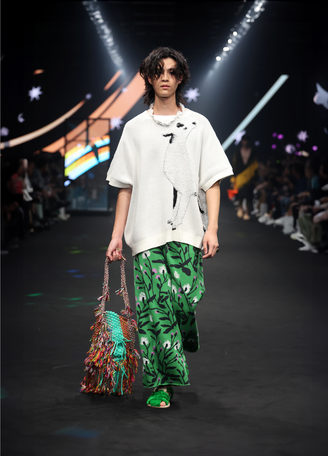 The SS25 collection is inspired by illustrator Xia Xian's illustration work that is infused with fantasy and poetic visuals. The collection incorporates Taiwan's unique natural landscapes and urban scenes such as the sun, swallows, fems, mountain views, utility poles, animals, and more - paired with relaxed silhouettes that embody these themes. Through the silhouettes and playful use of graphics and textures, different layers of the storyline are presented, resulting in a collection of vibrant and character-filled garments. The clothing fuse contemporary and cultural elements, manifesting Taiwan's urban culture and the spirit of its youth.